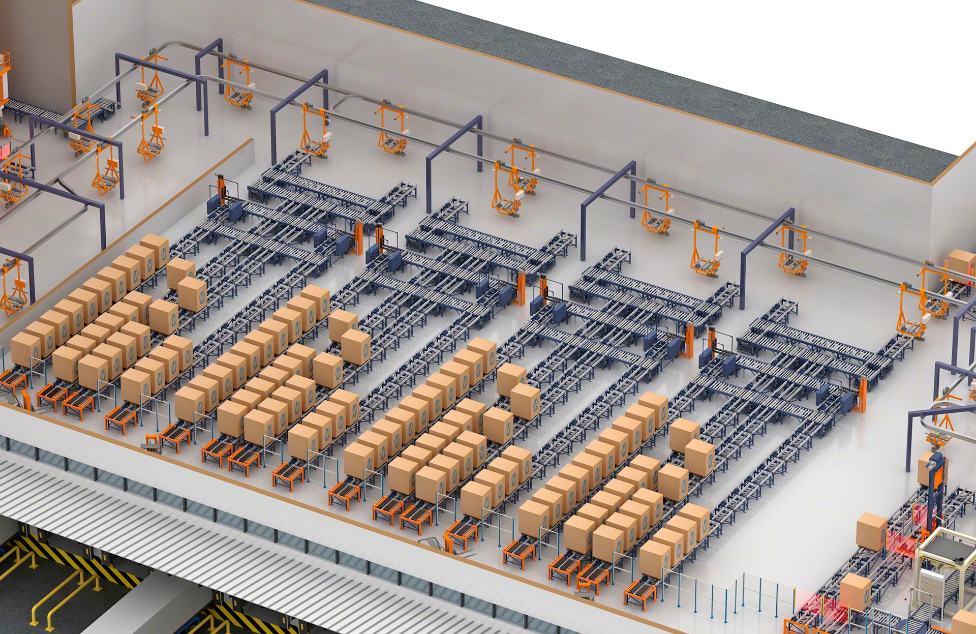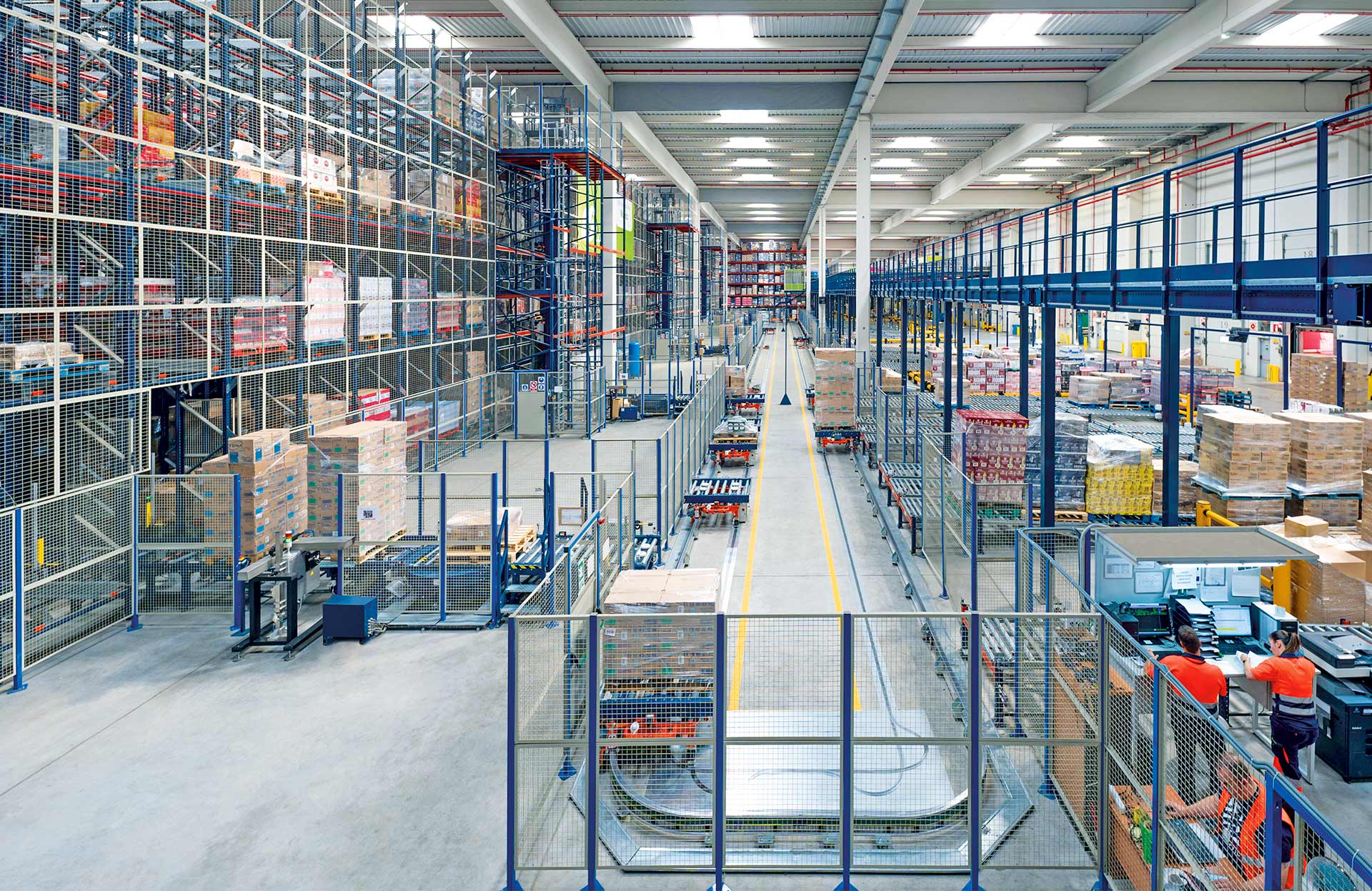 Las electrovías agilizan el flujo interno de tarimas sin la intervención de operadores. Los productos llegan automáticamente a la posición de carga o descarga y la entrada o salida al almacén se realiza de la forma más ágil y rápida.